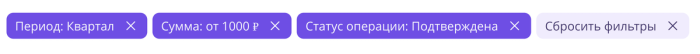 Пользователь может настроить сразу все возможные фильтры, сузив область поиска необходимой операции. Все выбранные фильтры отобразятся над таблицей операций.