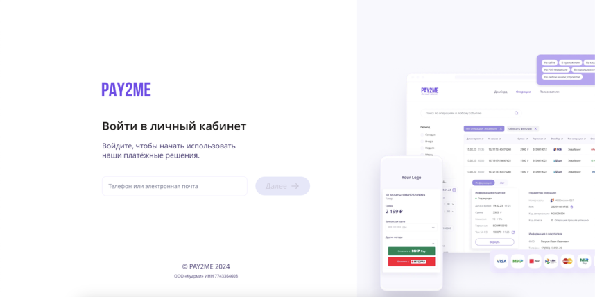 Вход в Личный кабинет возможен через браузер по ссылке https://my.pay2me.com/