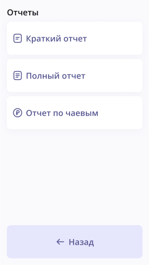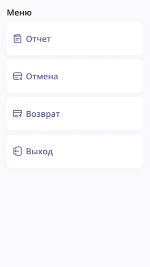 Попадаем в меню администратора, где доступны функции: отчеты, возврат, отмена, выход