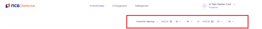 Ниже доступна информация об общей сумме чаевых в пользу всех зарегистрированных Заведений за периоды по умолчанию – сегодня, вчера, неделя и месяц.