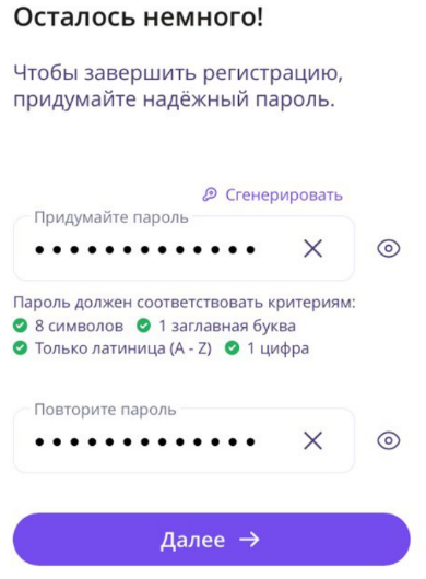 При переходе по ссылке сотрудник попадает на страницу регистрации, где потребуется пошагово подтвердить номер телефона посредством ввода одноразового кода, создать пароль от учетной записи и далее заполнить карточку сотрудника: