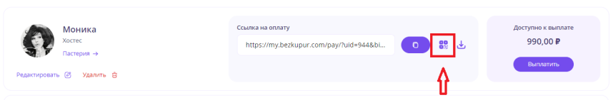 Также автоматически генерируется QR-код для печатной продукции заведения, отсканировав который также можно попасть на страницу оплаты: