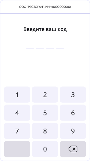 Для того, чтобы попасть на страницу меню администратора, требуется ввести на POS-терминале код сотрудника: