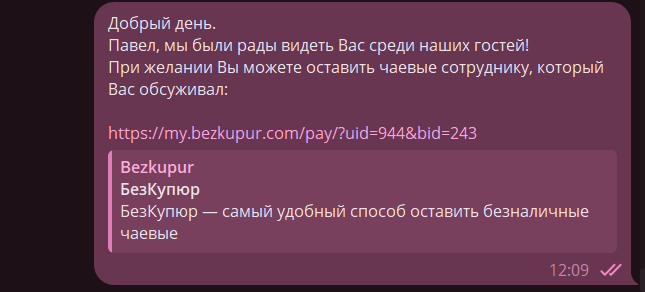 Оплатить чаевые возможно посредством СБП, или картой, Mir Pay или МТС Pay.