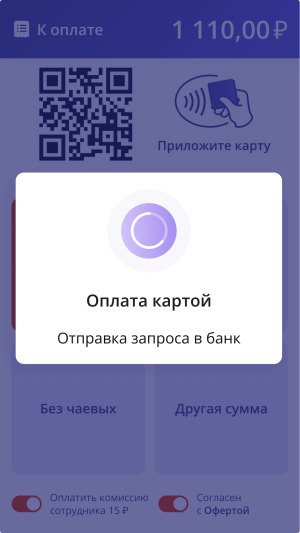 После этого на терминале отобразится страница оплаты с предложением оставить чаевые.