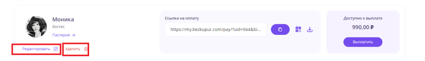 Опция “Раздельно” подразумевает, что все средства, полученные через платежные страницы сотрудников, будут копиться на их балансе внутри сервиса. Эти средства можно будет выплатить в любой момент времени конкретному сотруднику.