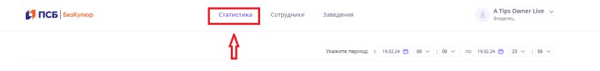 Информационный раздел «Статистика» можно открыть, нажав на таб в верхнем навигационном меню.