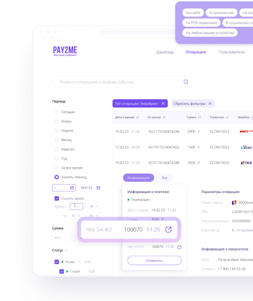 Свяжитесь с нами и начните принимать платежи. Вы также можете связаться с нами, чтобы разработать индивидуальное решение для вашего бизнеса и получить персональное предложение по стоимости.