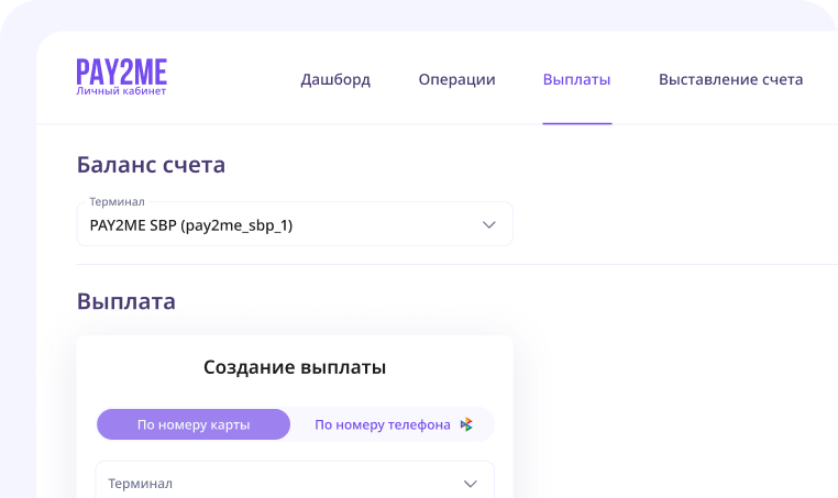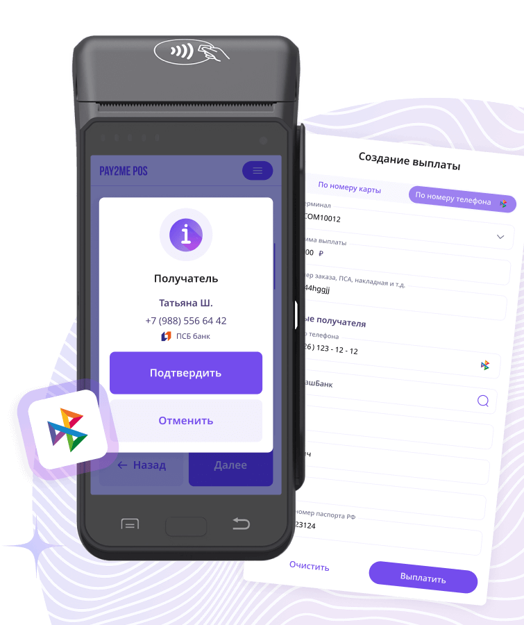 Выплаты по номеру картыВыплаты на карту физ лицу (по номеру карты) ввод вручную или NFC ридер
