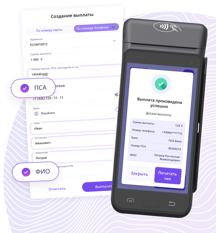 Выплаты по СБПВыплаты физическому лицу по номеру телефона, автоматическая проверка принадлежности номера телефона владельцу