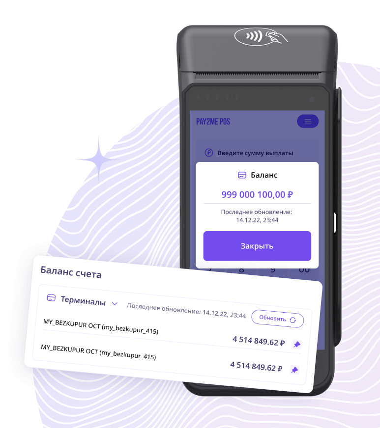 Баланс расчётного счетаВсегда под рукой актуальный баланс расчётного счета — можно отслеживать в личном кабинете и на POS-терминале