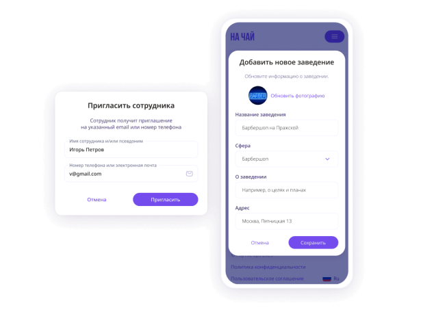Добавление сотрудников и заведенийСотрудников можно пригласить или добавить вручную