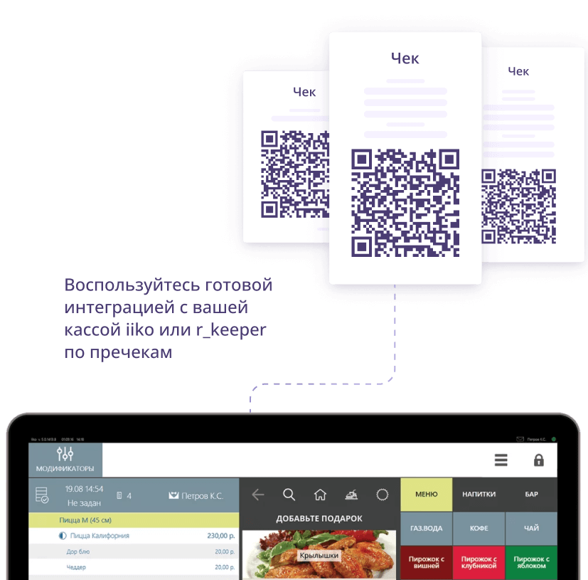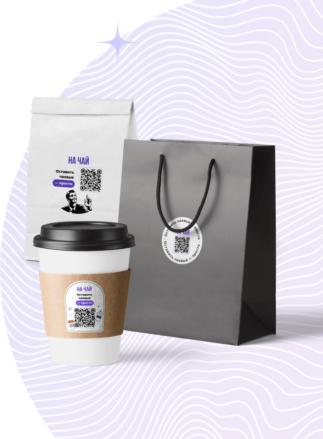 - Клиент принимает заказ, сканирует QR-код на упаковке и оставляет чаевые