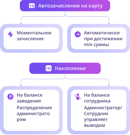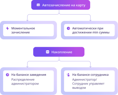 Администратор полностью управляет выводом и распределением чаевых в заведении, применяя индивидуальные настройки под конкретных сотрудников