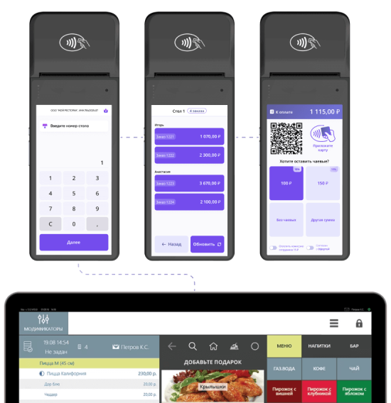 Оплата заказа и чаевых одной операцией и Возможность продолжить на смартфоне