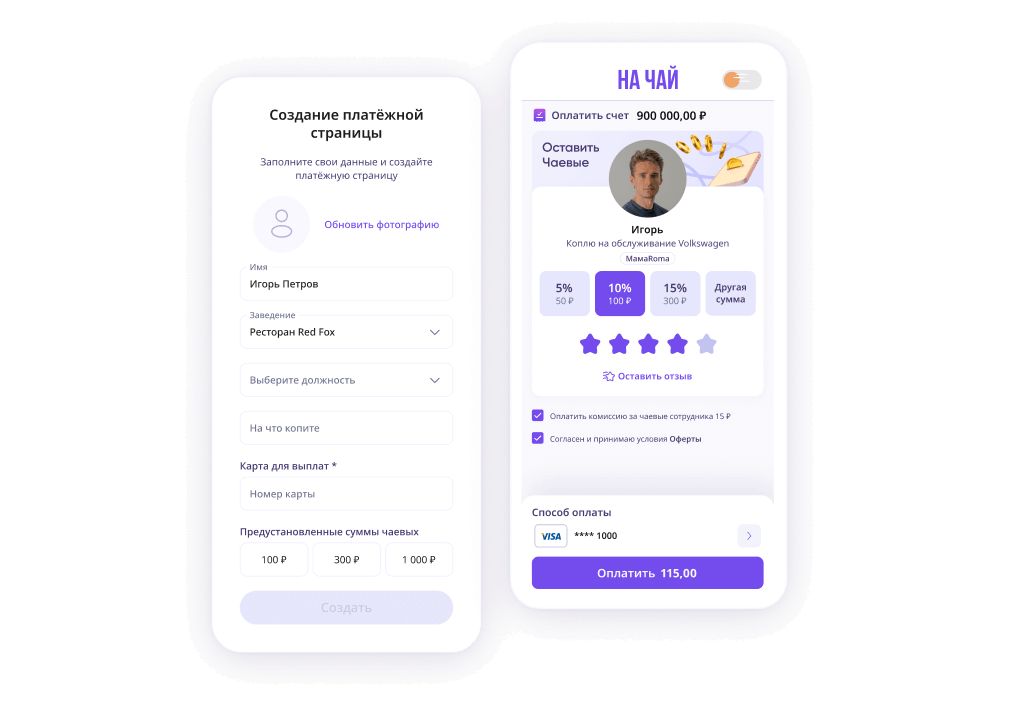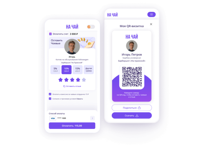 Сервис «На чай» поддерживает несколько клиентских сценариев